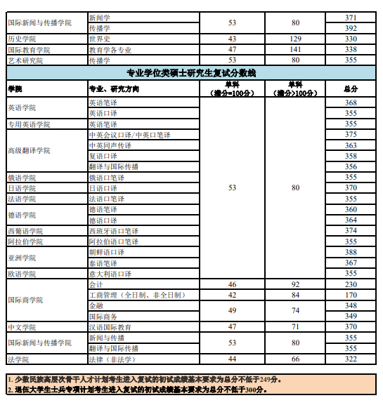 招生專業及復試分數線