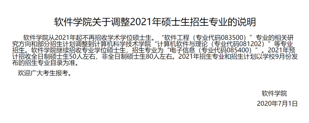 復(fù)旦大學(xué)軟件學(xué)院去年就曾發(fā)布說明,表示從2021年起不再招收學(xué)術(shù)學(xué)位碩士生。