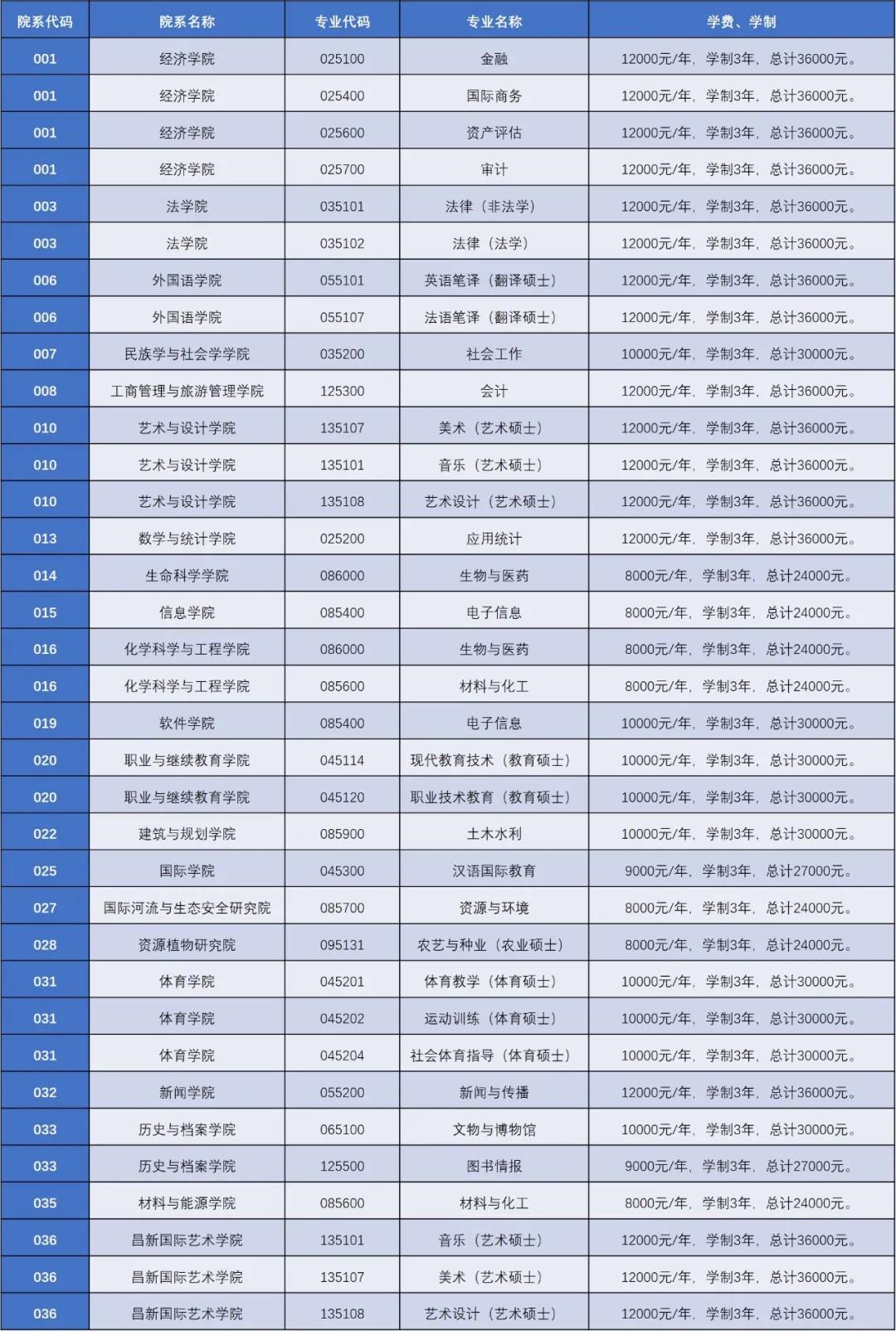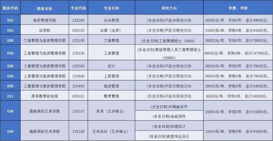 2.全日制專業(yè)學(xué)位學(xué)費標(biāo)準(zhǔn)見下表: