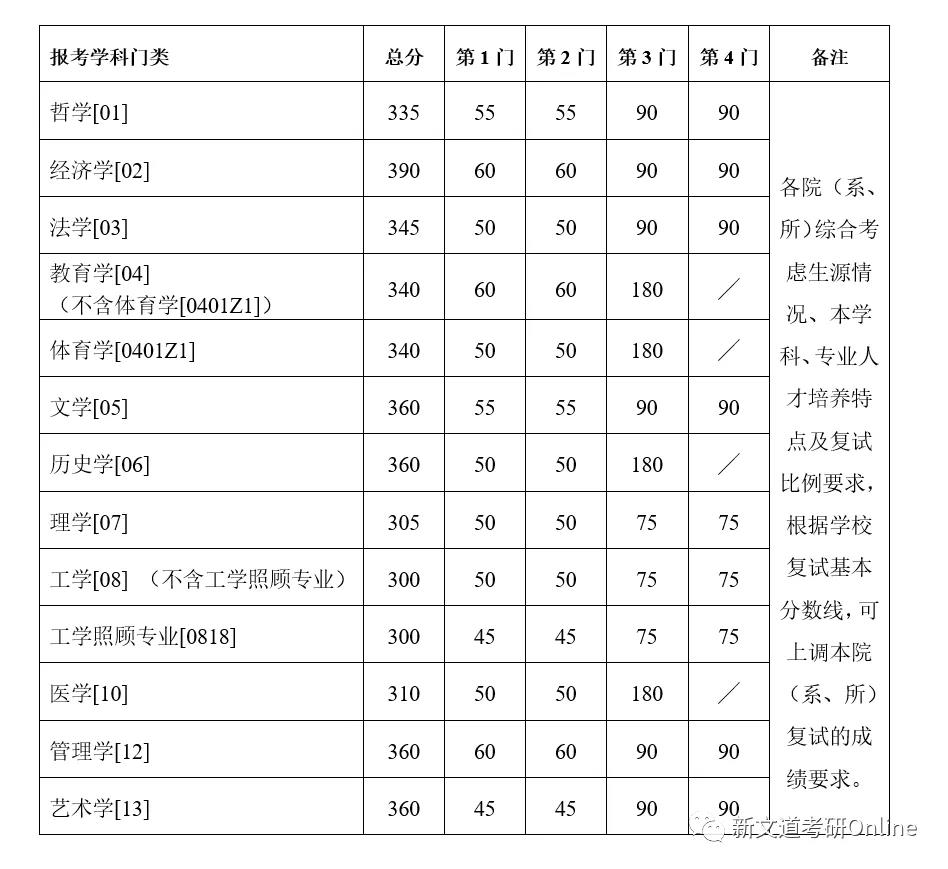 招生專業及復試線: