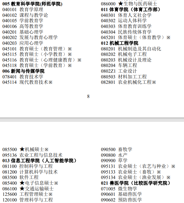 學校學科門類齊全。設有 29 個二級學院和 1 個獨立學院,124 個本科專業,涵蓋哲學、 經濟學、法學、教育學、文學、歷史學、理學、工學、農學、醫學、管理學、藝術學等 12 大 學科門類。全校普通全日制本科生 26500 多人,各類博、碩士研究生 13300 多人。現有一級 學科博士學位授權點 21 個,一級學科碩士學位授權點 50 個,博士專業學位類別 3 個,碩士 專業學位類別 27 個,博士后流動站 20 個;擁有國家級重點學科 2 個,國家重點(培育)學 科 1 個,省優勢學科 7 個,省“十三五”一級學科重點學科 6 個,省一級學科重點(培育)學 科 3 個,化學、植物與動物科學、工程學、農業科學、臨床醫學、材料科學、計算機科學等 7 個學科的
