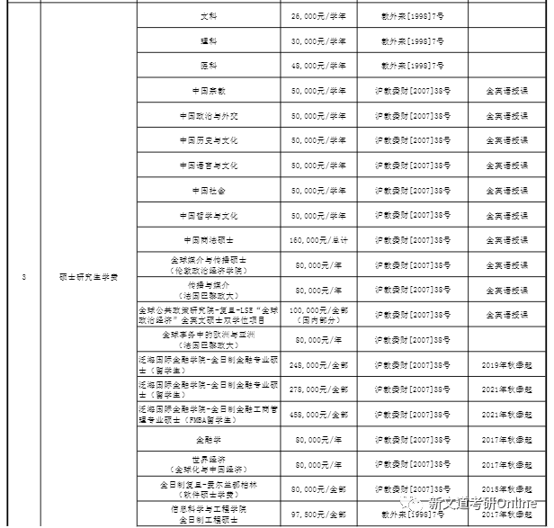 按照國家規(guī)定,我校碩士研究生收費(fèi)標(biāo)準(zhǔn)為:學(xué)術(shù)學(xué)位碩士生每生每學(xué)年8000元(宗教學(xué)專業(yè)為每生每學(xué)年 7000元),按學(xué)年收取。專業(yè)學(xué)位碩士生(含臨床醫(yī)學(xué)、口腔醫(yī)學(xué)專業(yè)學(xué)位)的學(xué)費(fèi)標(biāo)準(zhǔn),請考生關(guān)注我校財務(wù)處網(wǎng)站(網(wǎng)址:http://www.cwc.fudan.edu.cn/)“通知公告”欄發(fā)布的教育收費(fèi)公示,或咨詢報考院系。