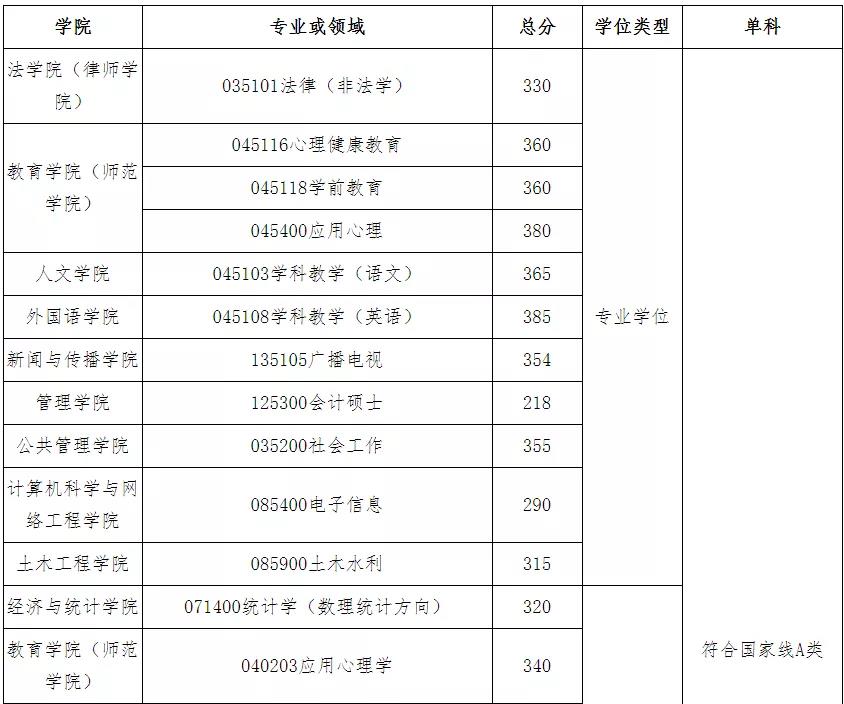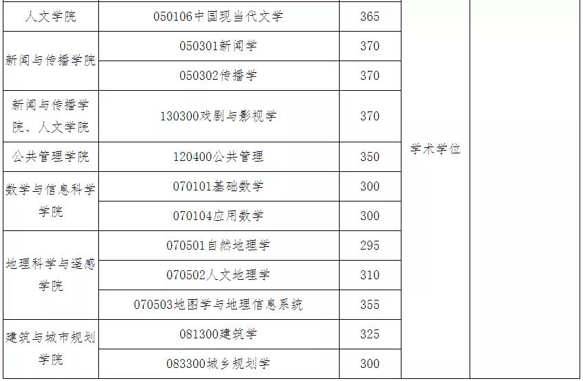 招生專業及復試線: