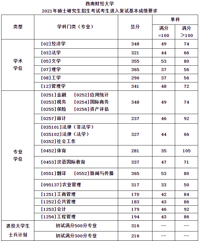 招生專業及復試分數線