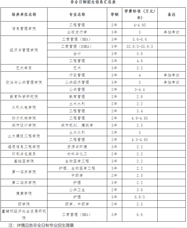 全日制學(xué)術(shù)學(xué)位研究生的學(xué)費(fèi)標(biāo)準(zhǔn)為:8000元/人·年;全日制專業(yè)學(xué)位研究生的學(xué)費(fèi)標(biāo)準(zhǔn)為:13000元/人·年。非全日制研究生的學(xué)費(fèi)標(biāo)準(zhǔn)見下表,最終學(xué)費(fèi)以湖北省物價(jià)部門核準(zhǔn)的學(xué)費(fèi)標(biāo)準(zhǔn)為準(zhǔn)。