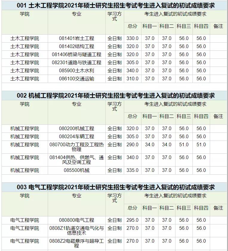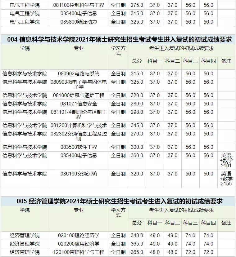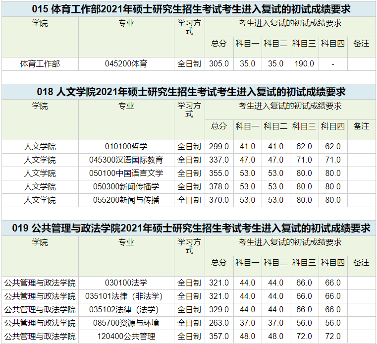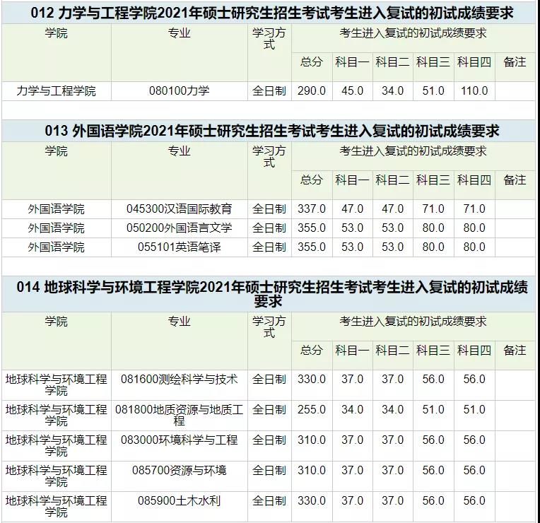 招生專業(yè)及復(fù)試線: