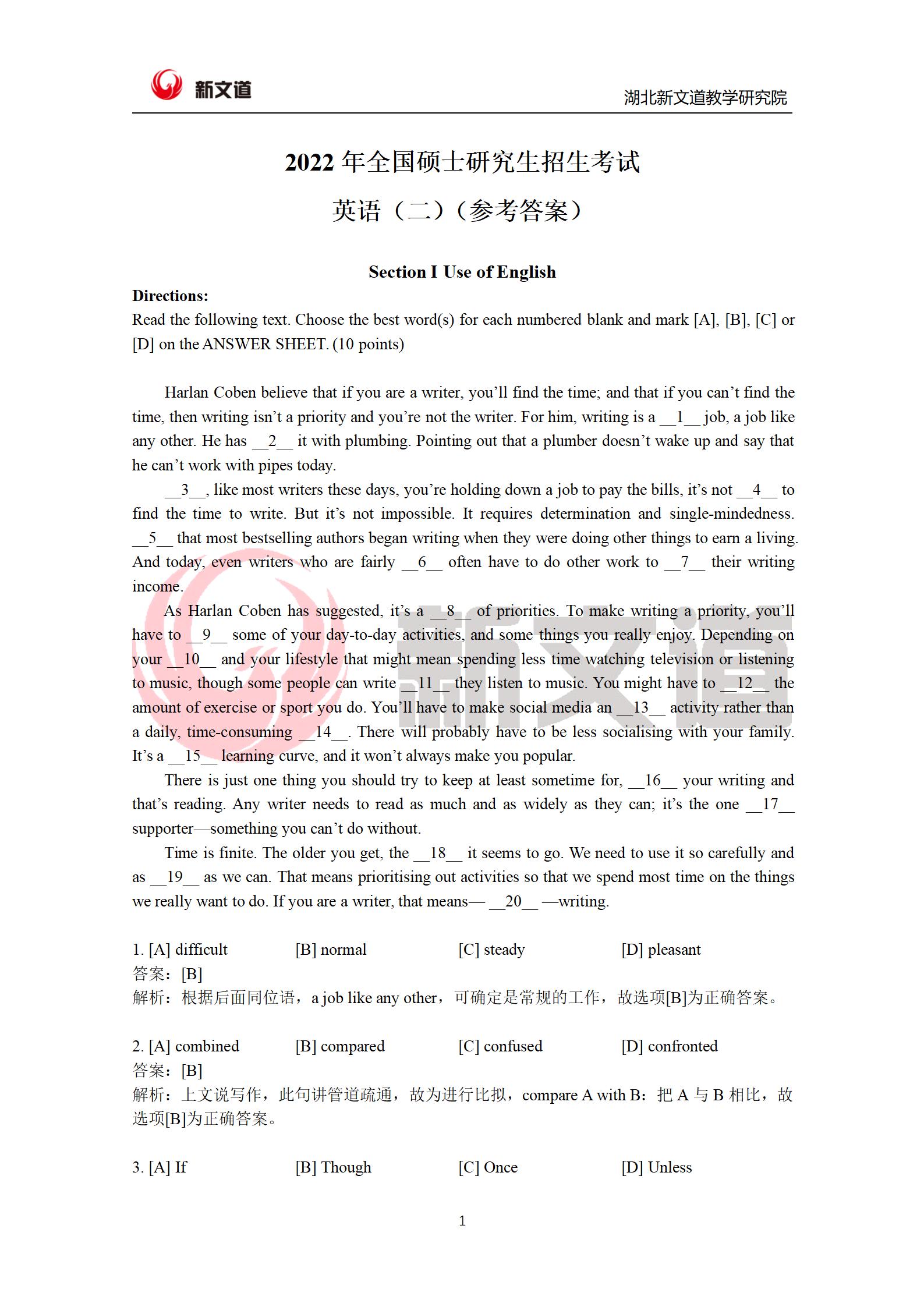 上一篇:2022英語一&英語二翻譯寫作真題答案