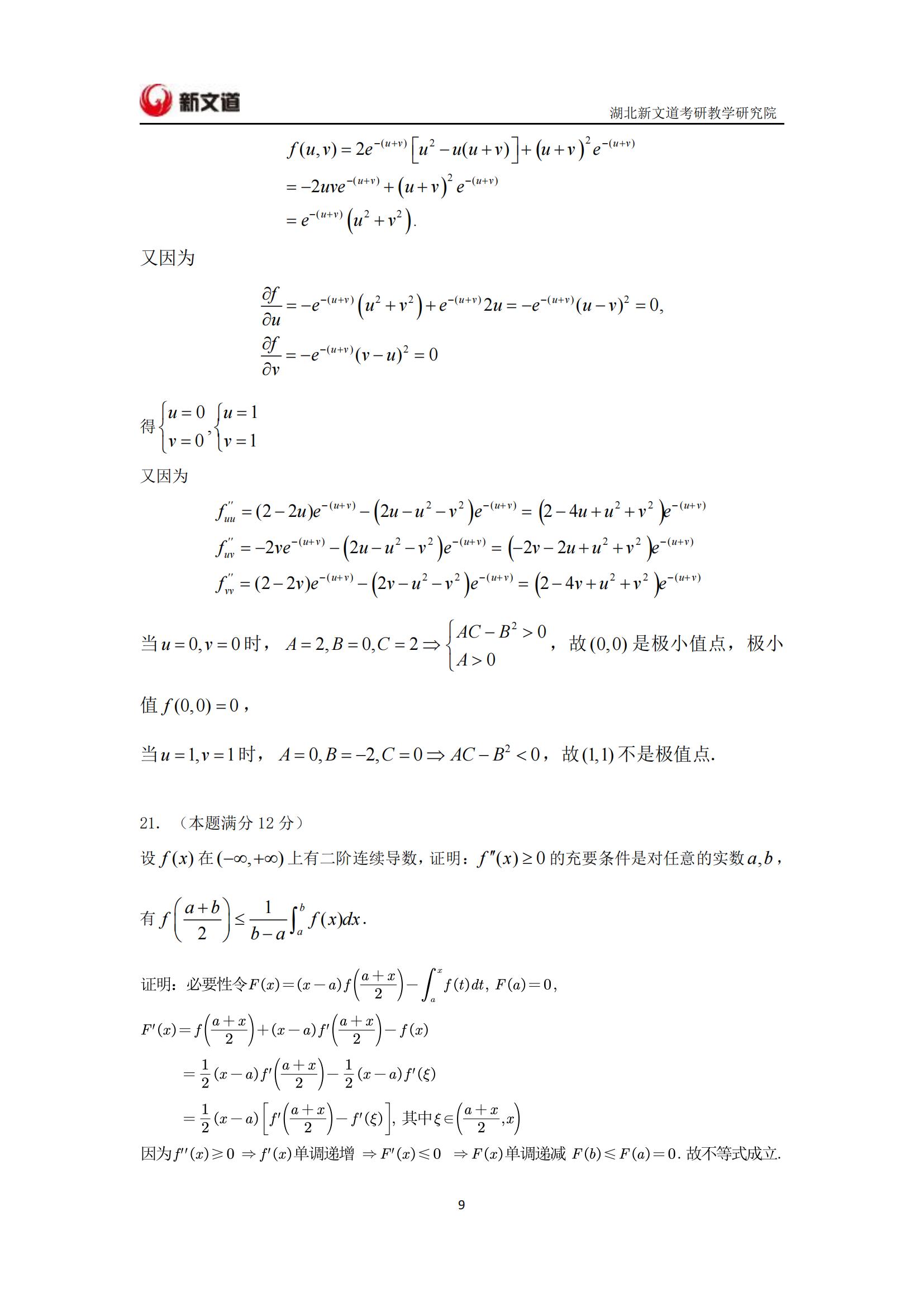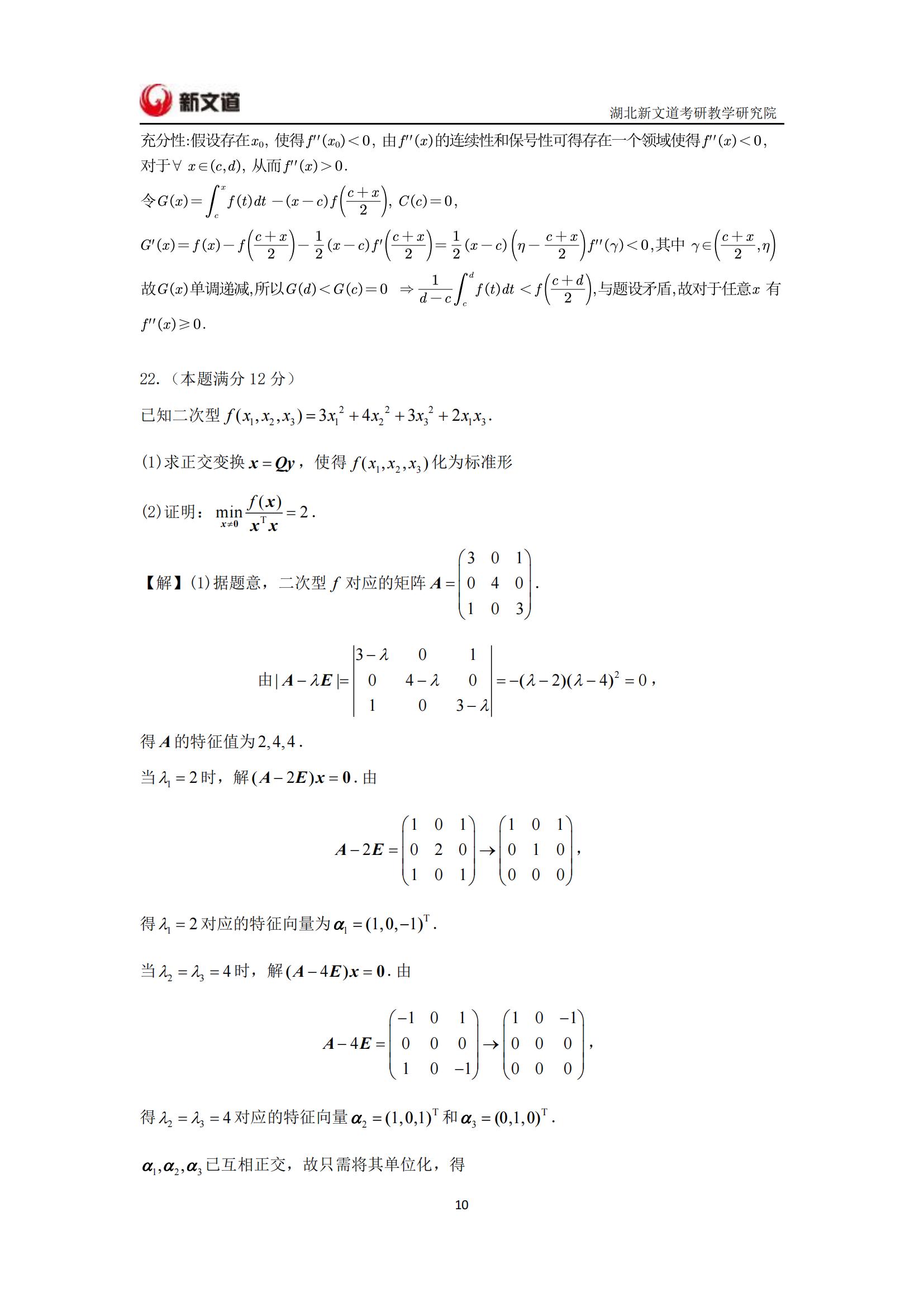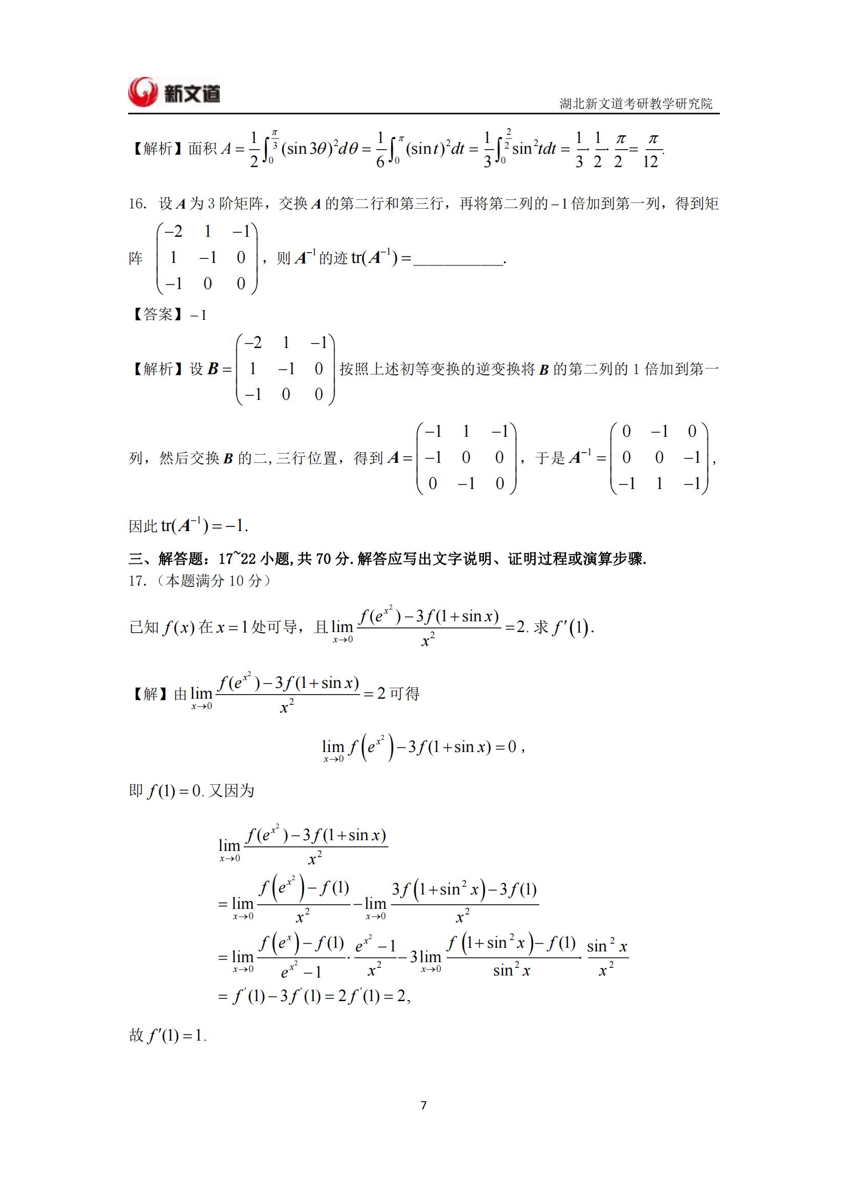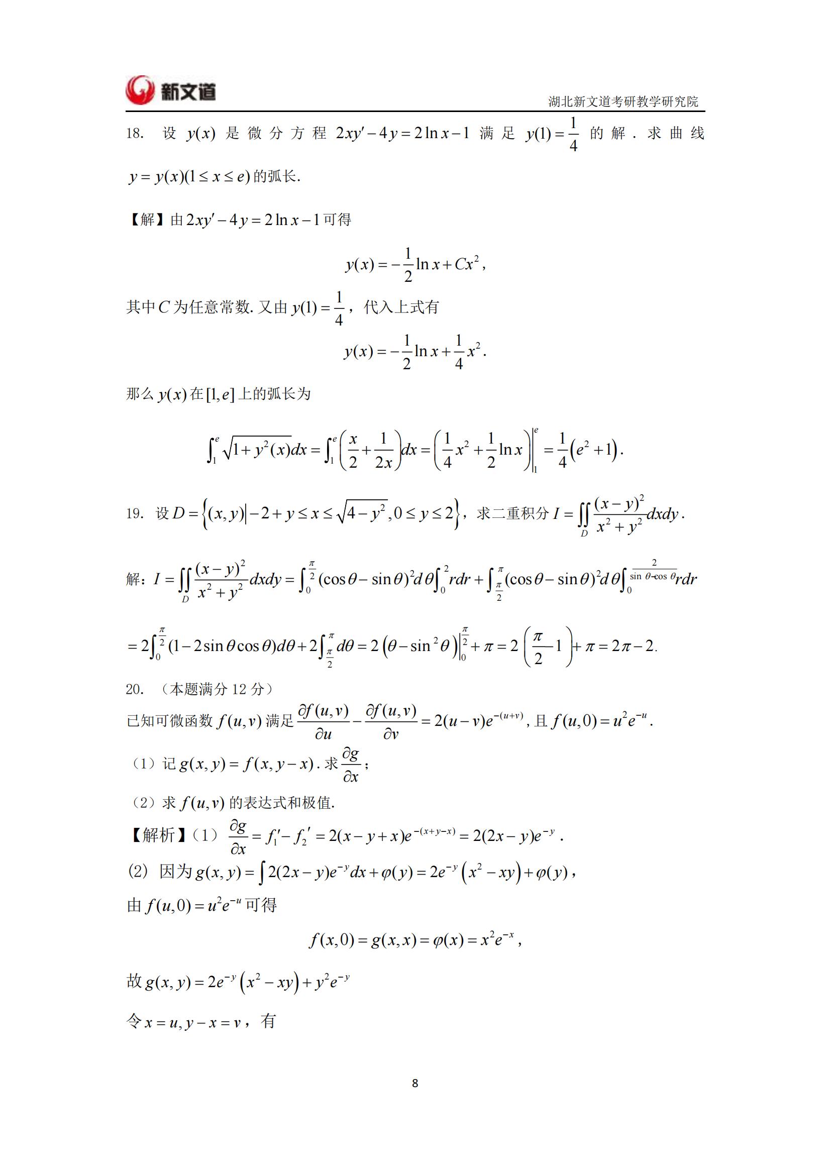 2022考研已結束,湖北新文道考研為大家整理了2022年考研數學二真題及答案解析完整版。