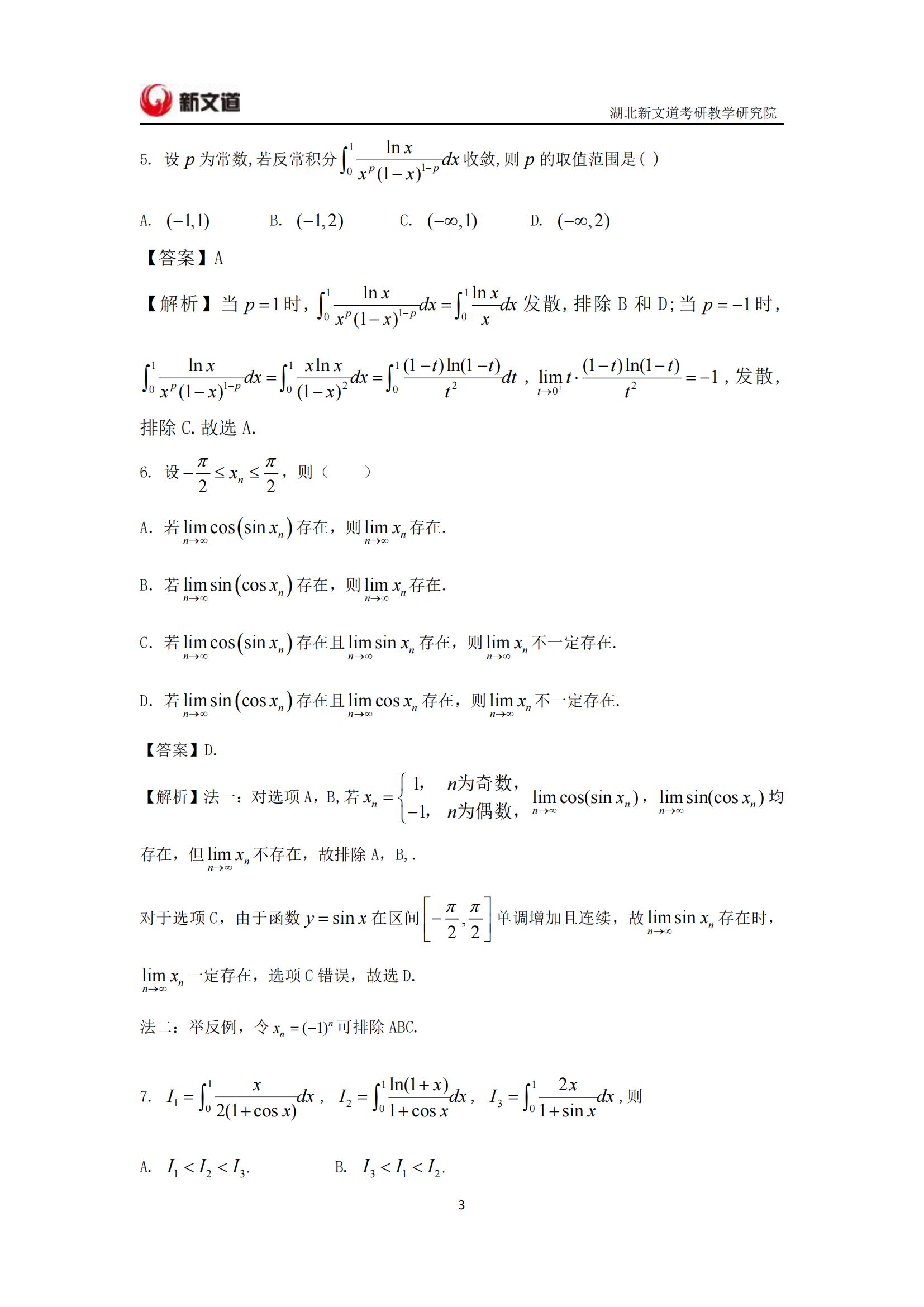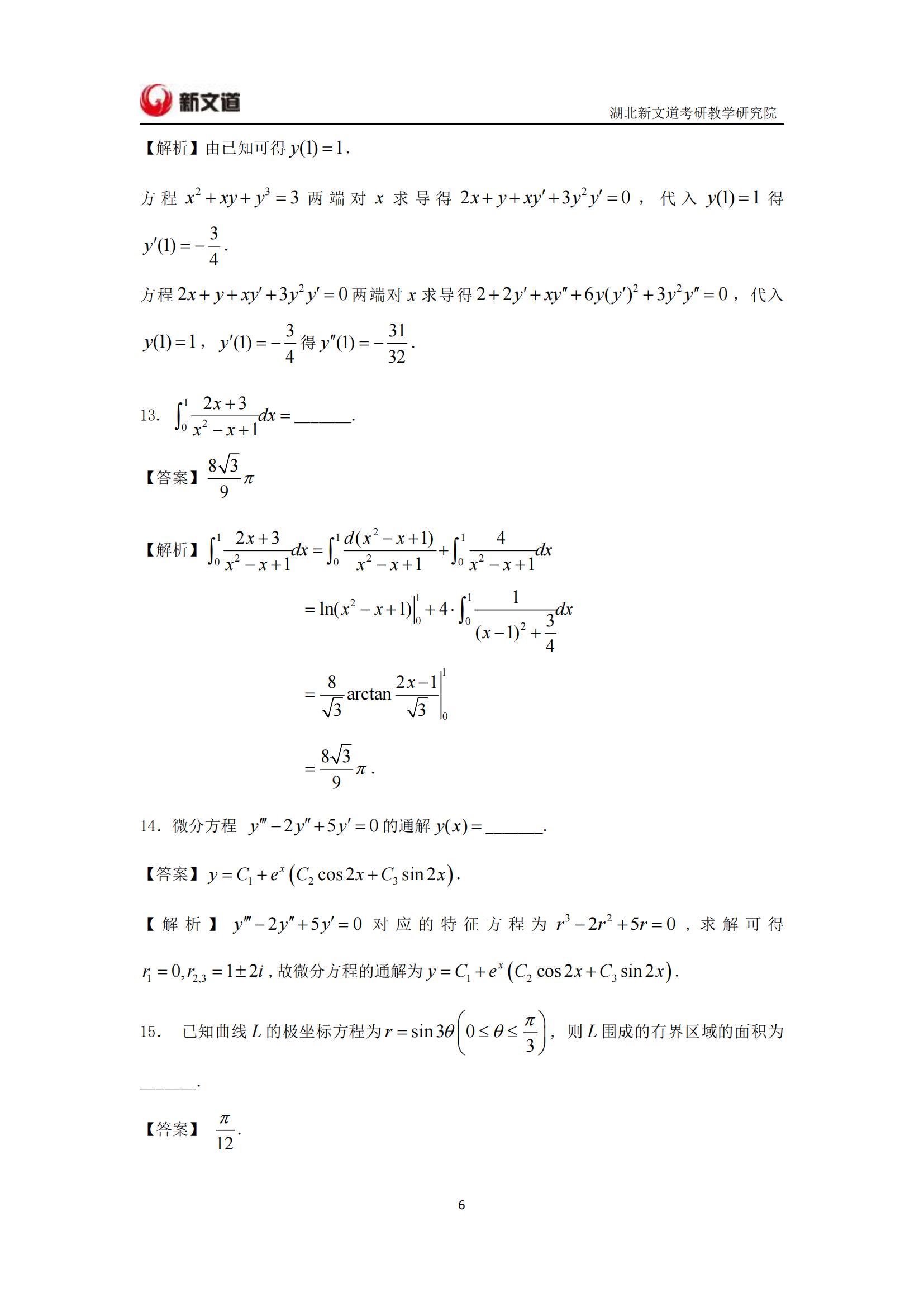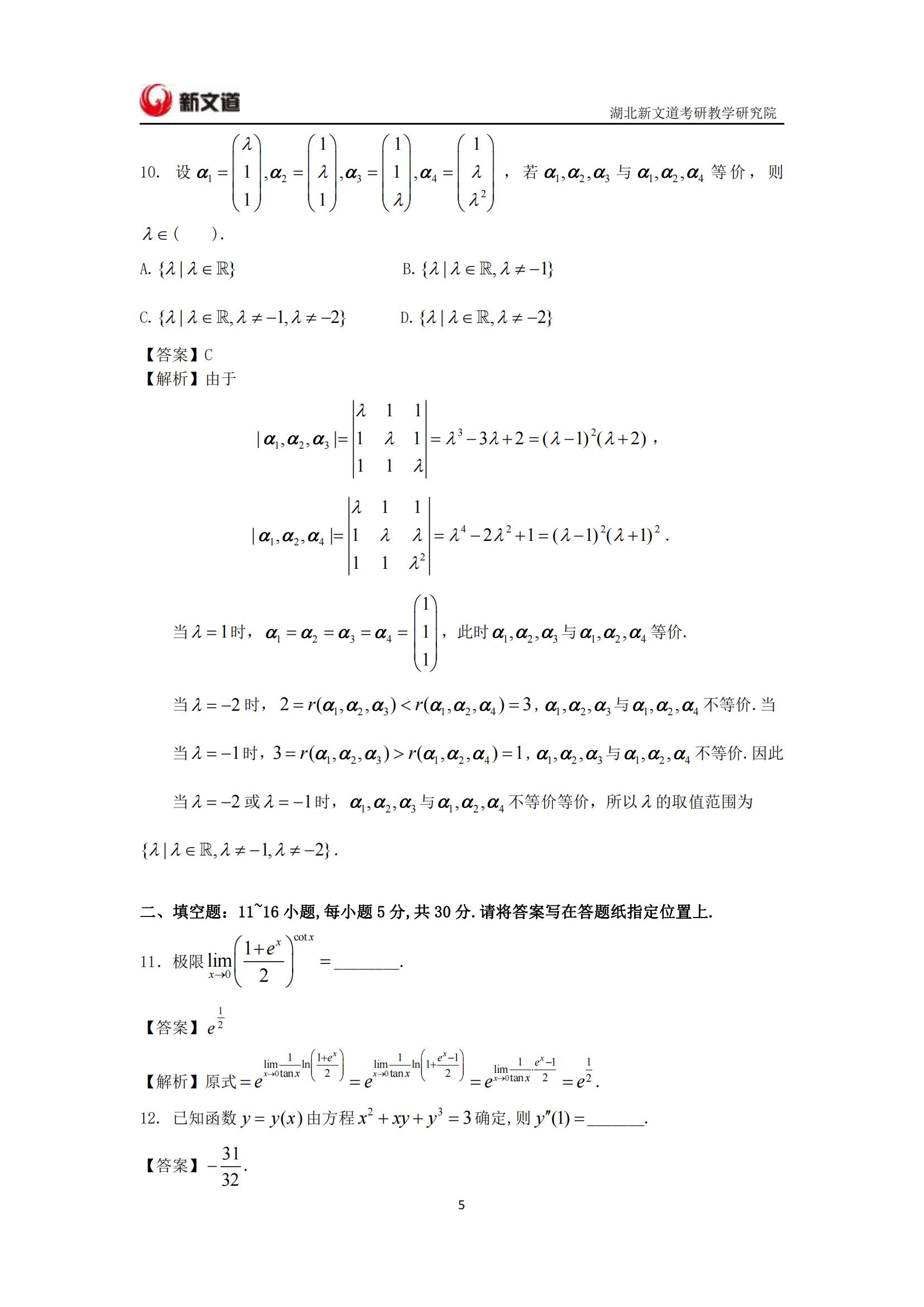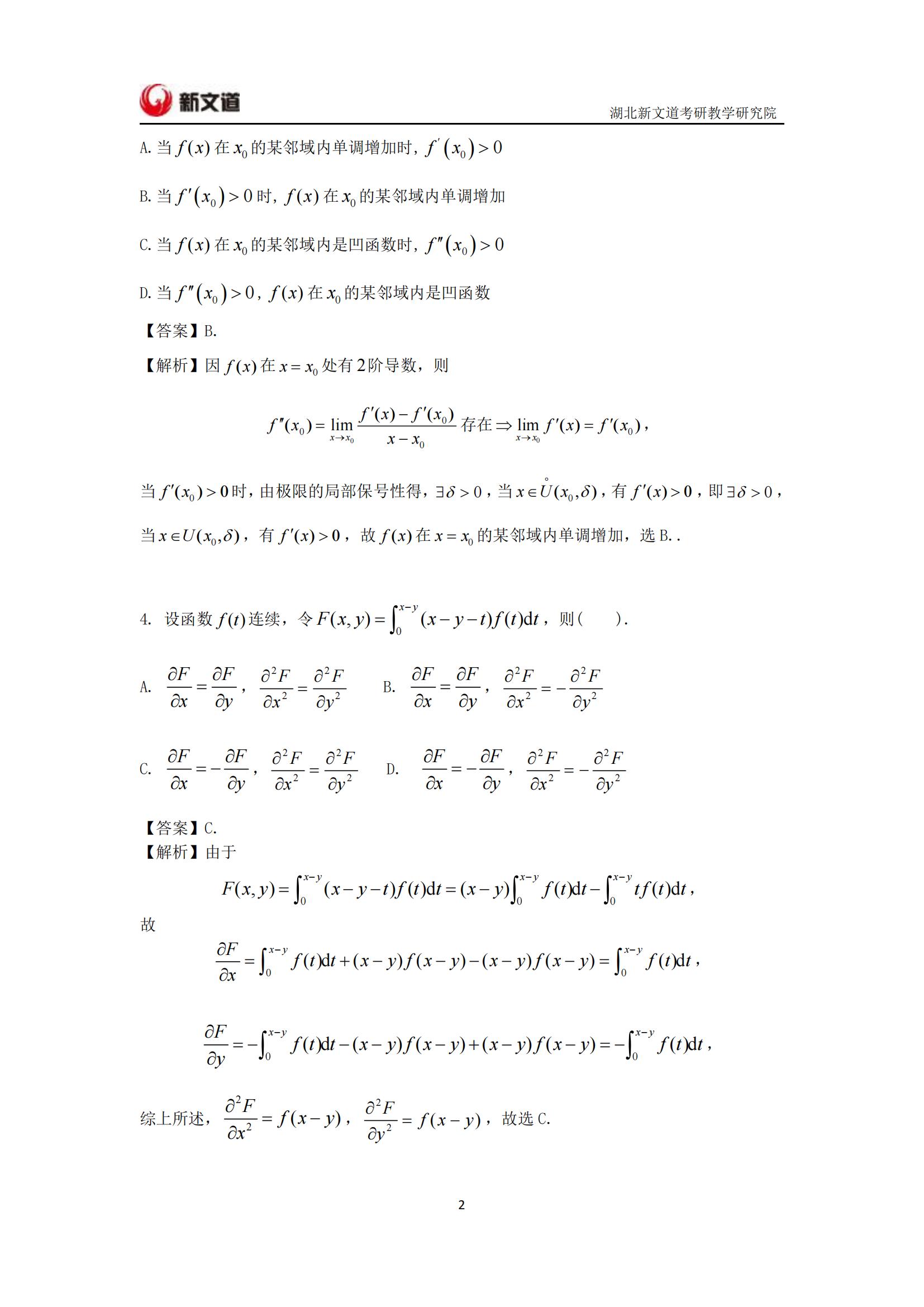 2022考研已結束,湖北新文道考研為大家整理了2022年考研數學二真題及答案解析完整版。