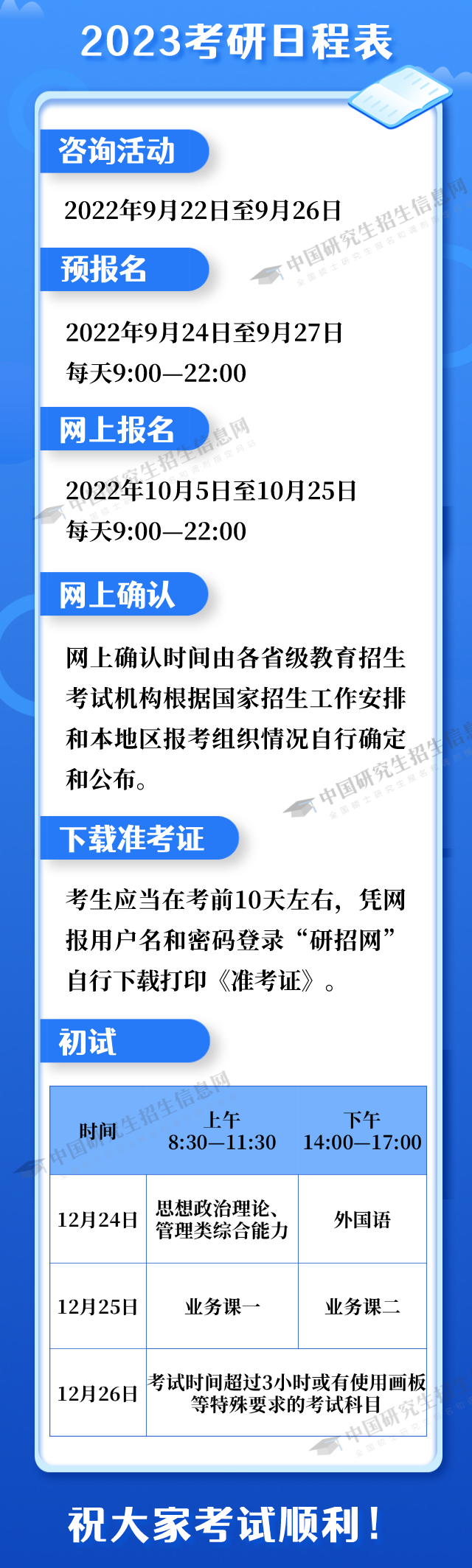 2023屆的全國研究生考試初試考試時間敲定,在2022年12月24日,預計考試當天的天氣溫度為1-13℃,早上出門需要多穿點厚衣服,當天天氣是多云,考試時間在早上的8點半到下午的5點這個時間區間,中午11:30-14:00是休息時間,如果位置比較遠的同學,家長陪考的話,建議定一個交通方便不堵車的酒店,不然早上會非常的趕。
