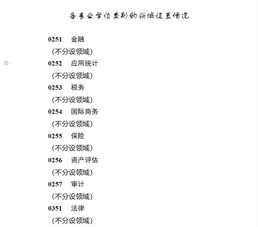 近年來專業碩士報考人數越來越多,超過半數的專碩考生,為方便社會各界了解高校專業學位發展情況、學生報考、用人部門查詢,在各專業學位教育指導委員會報送的基礎上,國務院學位委員會辦公室匯總形成了各專業學位類別的領域設置情況。新文道考研小編為大家整理匯總如下,一起來看下。