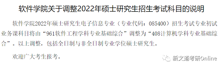 電子信息(專碩)初試業務課科目由“961軟件工程學科專業基礎綜合”調整為“408計算機學科專業基礎綜合”。