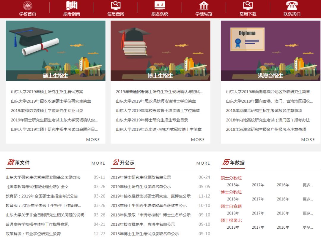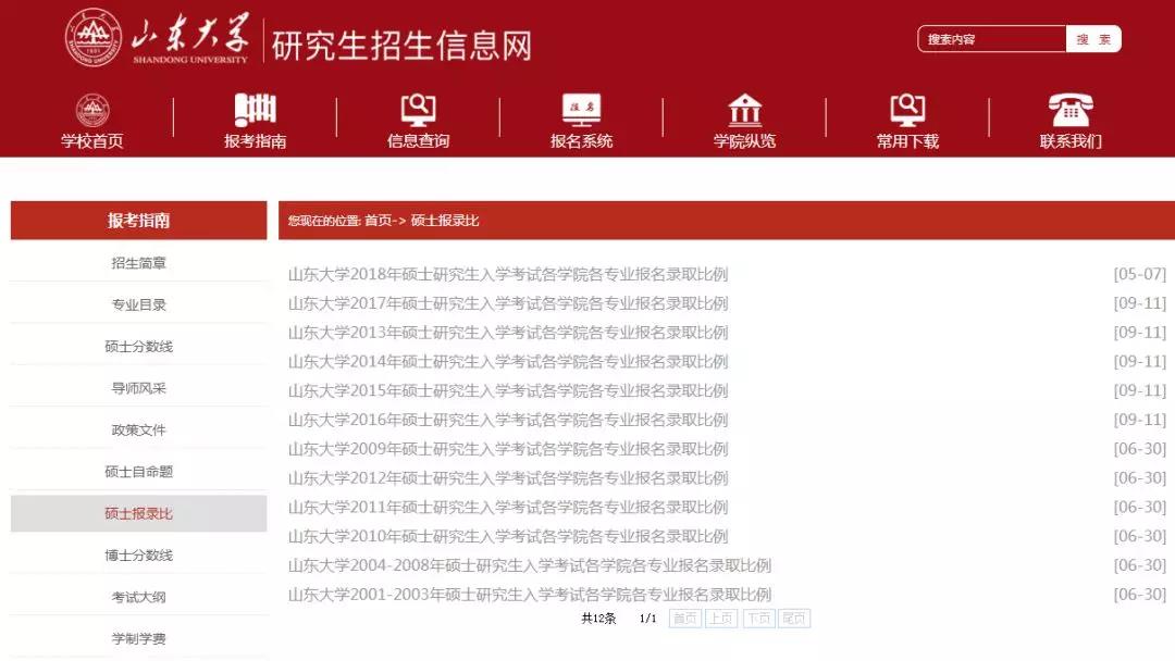 以山東大學為例,大家登錄山東大學研究生招生信息網,可以在首頁找到歷年數據。
