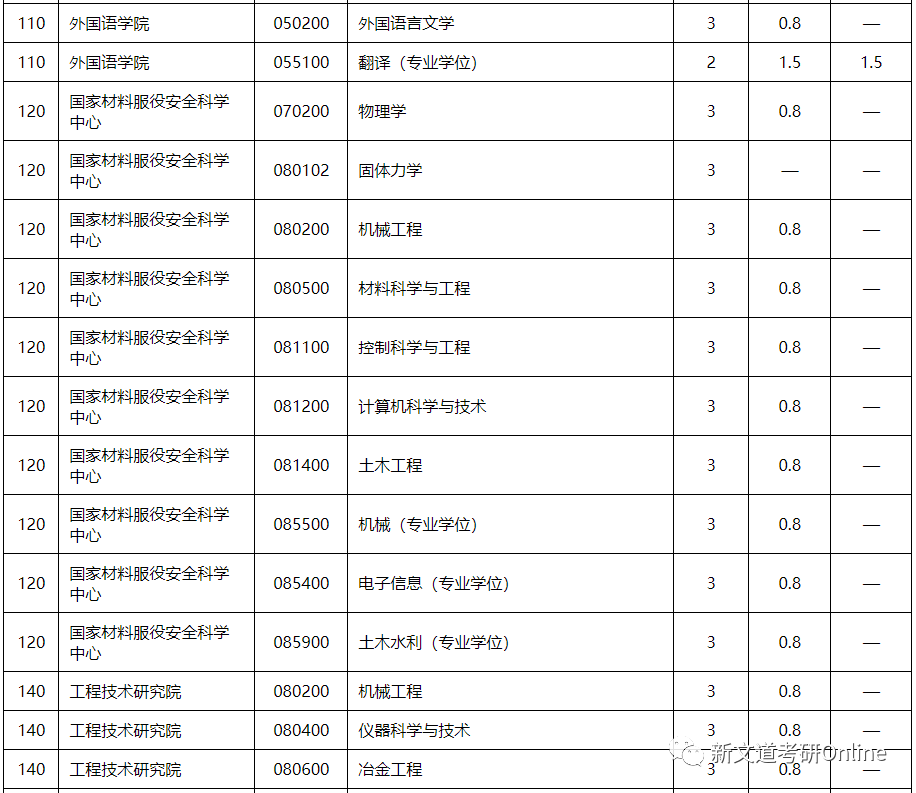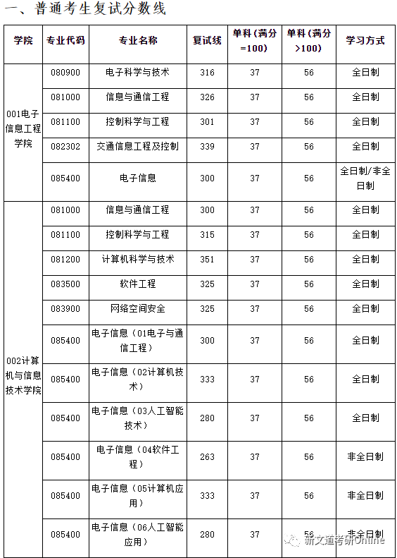 招生專業及復試分數線