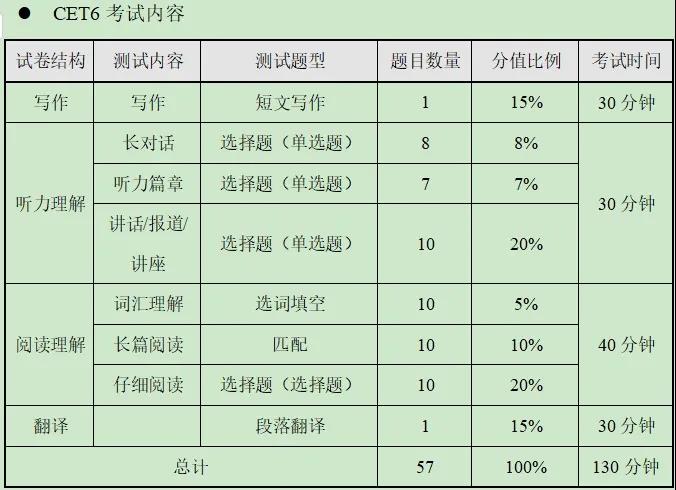 先來回顧下四六級考試的試卷結構,其中閱讀35%,聽力25%,寫作和翻譯各占15%,聽力一直是許多同學的痛點難點,大學以來幾乎沒有再接觸最為生疏。