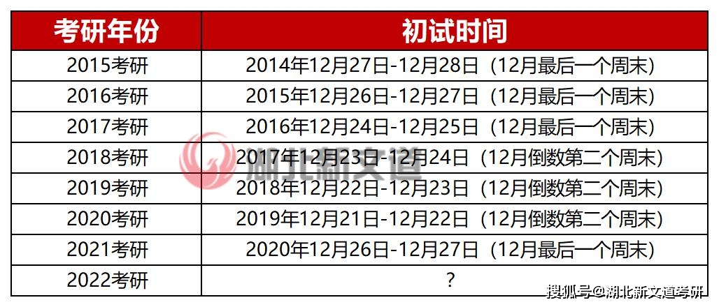 Hi,大家好!我是湖北新文道考研小編,很多小伙伴問小編:22考研初試時間是哪一天啊?高考都是固定的時間,但往年考研的時間好像并不是一樣的?因此,湖北新文道整理了一份往年考研時間表,咱們一起來說道說道~