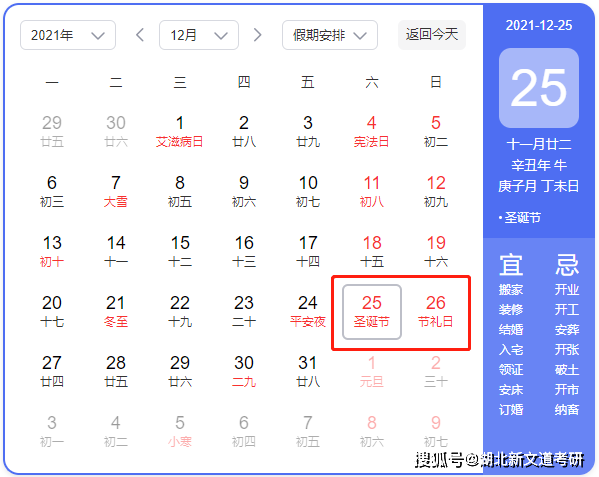 按此規律,從今年的12月情況來看,2022考研初試時間基本是2021年12月25日至12月26日。相較21考研,提前了一天!