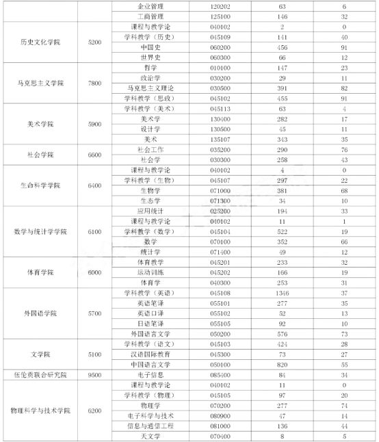教育部直屬六所師范大學之一,考研熱度比較高,湖北、河南等地很多考生報考華師,其中熱門專業如心理學,教育學,學科教學等專業競爭非常激烈,報錄比高達36:1,不過該校分數線算是6所師范里較低的。
