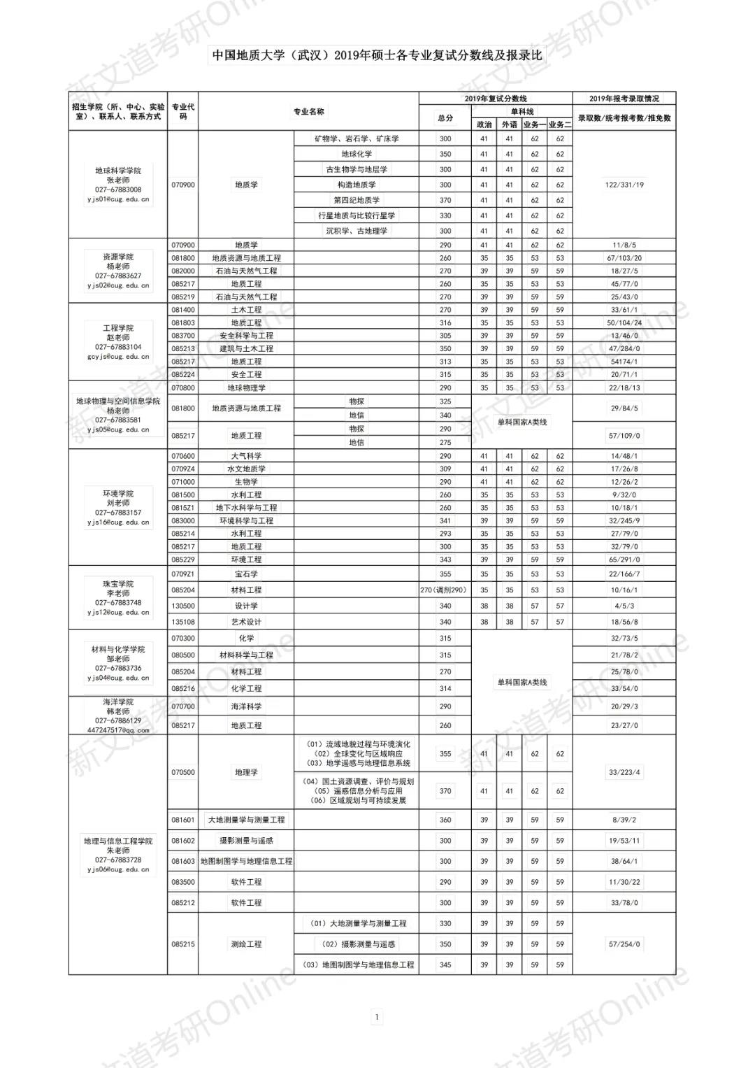 報考熱度不高,地大的地質學,地質資源與地質工程專業是A級學科,部分理工科如資源與環境、土木水利、機械等專業2020年錄取最低分不到300分。