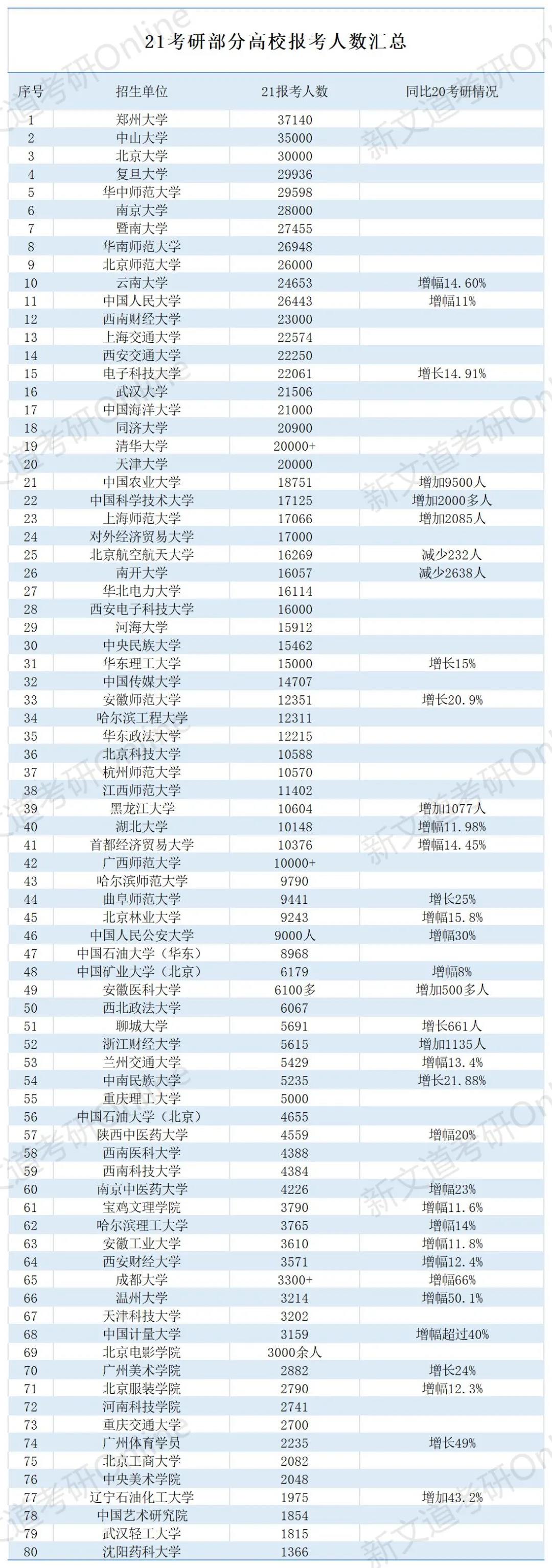 今天湖北新文道考研小編搜集了21年各校報(bào)考人數(shù)及已公布的21報(bào)錄比數(shù)據(jù)希望能幫助大家更好地掌握考研形勢(shì)