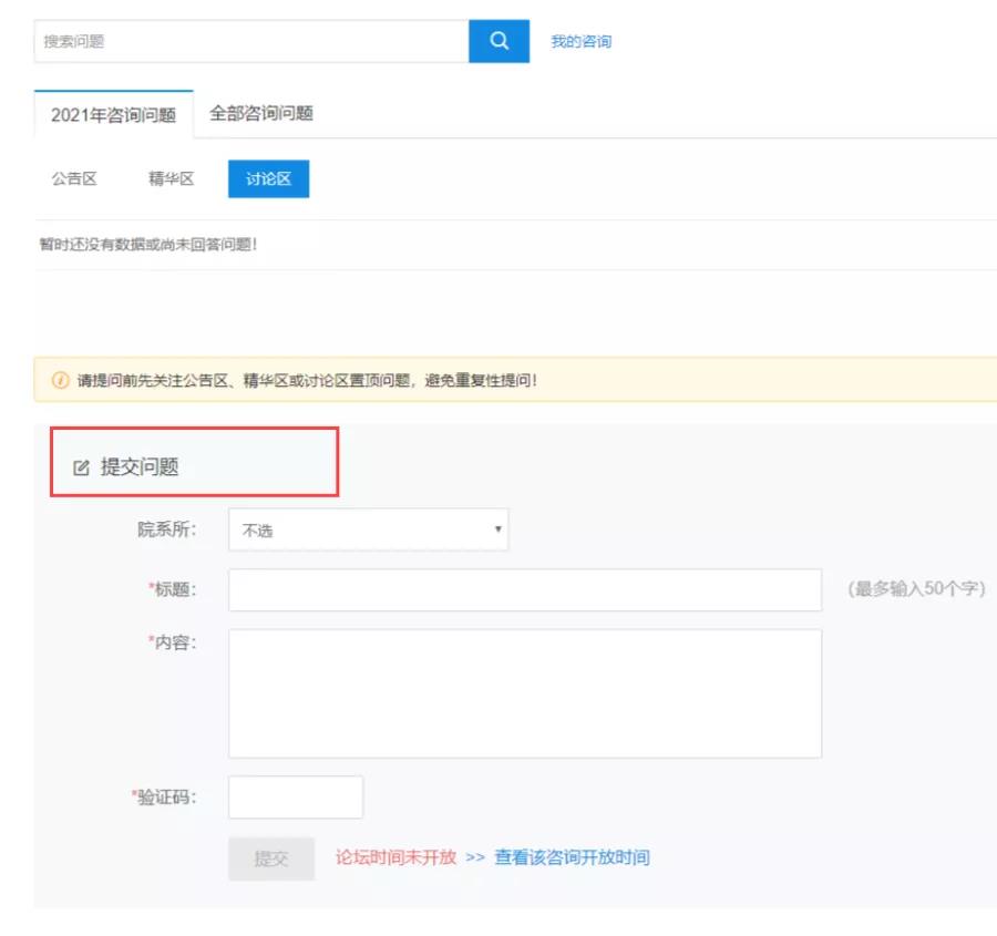 2:提前進入研招網的在線咨詢里查看目標院校論壇的具體開放時間。在論壇未開放時,你可以仔細瀏覽討論區、精華區和公告區。