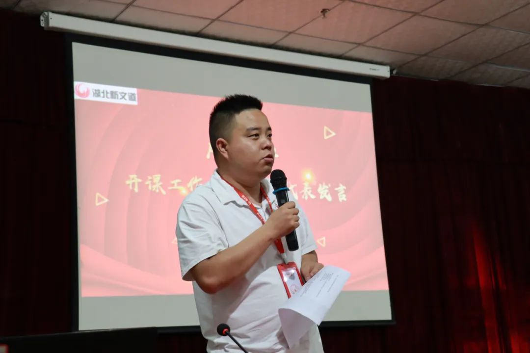湖北新文道副總經理張建強老師在動員大會上宣讀了2022年暑期開課執行方案,再次明確各工作小組的職責,要求全體員工嚴格執行工作程序,認真履行崗位職責,加強組織紀律性,大力弘揚“團結互助、開拓進取、愛崗敬業、與時俱進”的精神,盡全力保障暑期開課工作的順利進行。