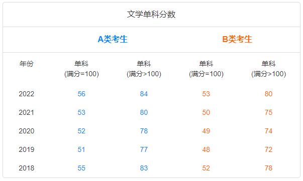 17類學術碩士(2018-2022)5年文學單科分數圖譜