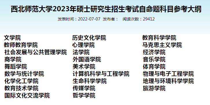西北師范大學(xué)發(fā)布了2023年碩士研究生招生考試自命題科目參考大綱。
