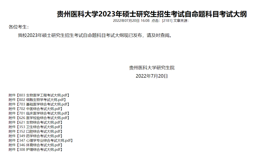 貴州醫(yī)科大學(xué)發(fā)布了2023年碩士研究生招生考試自命題科目考試大綱。